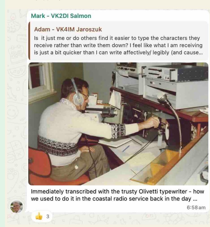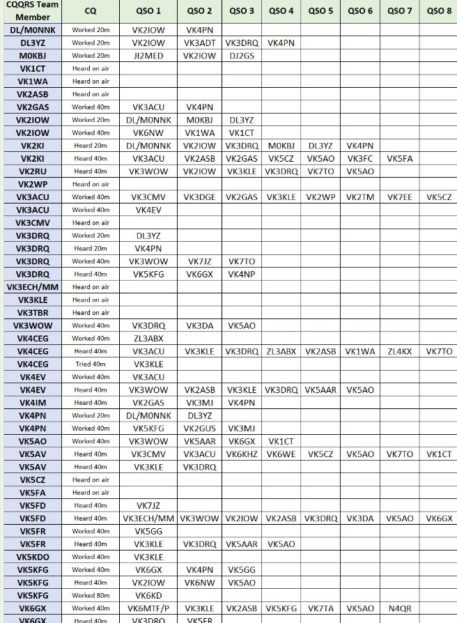 And a special thank you to our editorial team, Nigel G4RWI (head of software development), Patrick VK2IOW (reports coordinator), John VK2RU (spreadsheet wrangler), Richard VK6HRC (Post Morsition) and Lance VK7TO (resident softie). Great work all!