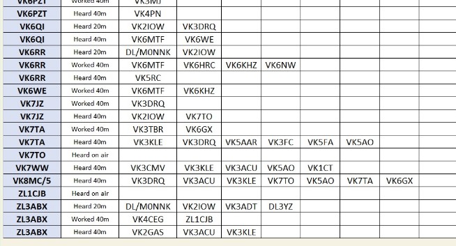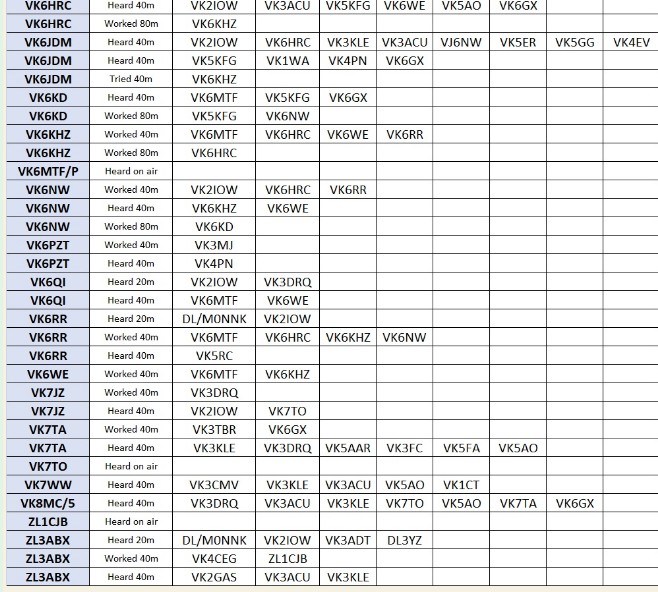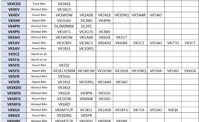With thanks to Nigel G4RWI’s clever software, and John VK2RU’s clever spreadsheet work, here’s the 66 stations heard by 48 members of our team on Tuesday: