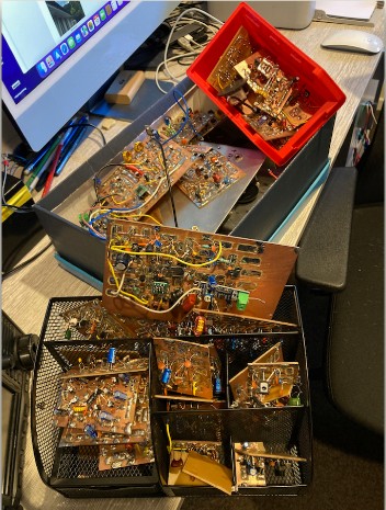 I’ve attached photos showing both my latest home made transceiver and a pile of stuf indicating how much solder I’ve melted lately. My understanding of electronic theory and calculations is very limited and fairly basic. However I think I’m learning slowly.