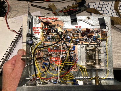 The transmitter is an OXO (designed by OM George GM3OXXX), but instead of using a crystal, I fed the output of the VFO into the place where the crystal should be.