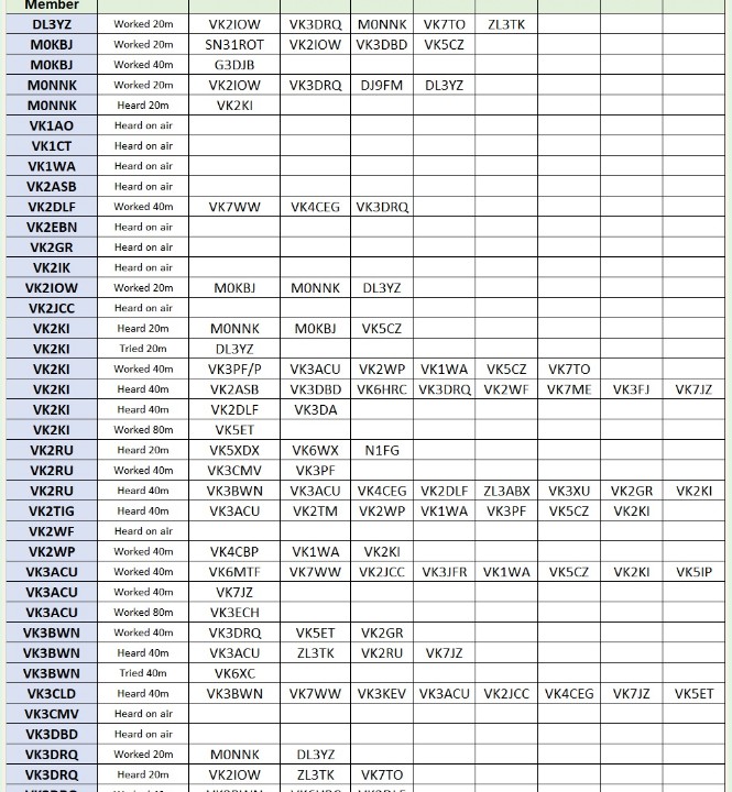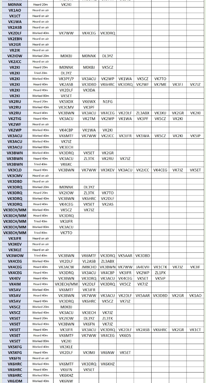 Have been on air was unbelievable; on behalf of all of us who benefit from our net as a learning experience, thank you one and alll And to add to the joy, I’ve just been looking at the spreadsheet that John VK2RU compiles from the weekly reports – amazing!