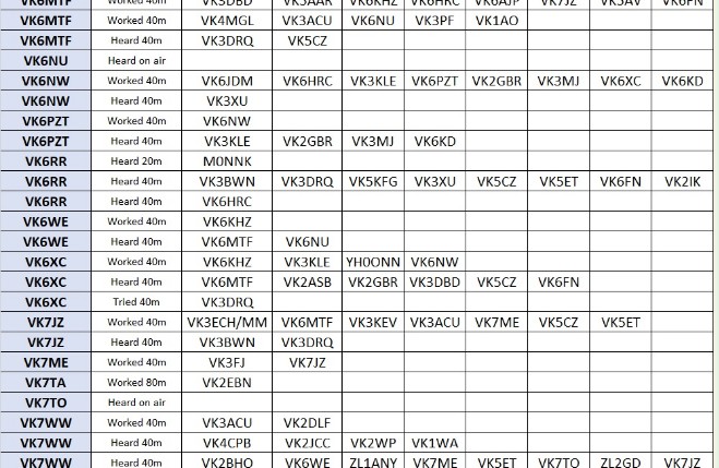 And a special thank you to our editorial team, Nigel G4RWI (head of software development), Patrick VK2I0W (reports coordinator), John VK2RU (spreadsheet pilot), Richard VK6HRC (Post Morsition) and Lance VK7TO (archiving bit wrangler).