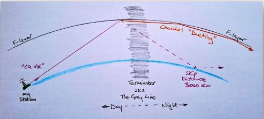 This week Ross MONNK has graced us with yet another thought-provoking article. His target this week is questioning the normal refraction model of HF propagation, postulating that the grey-line propagation phenomenon may be caused by chordal ducting – a topic he’d tackled previously.