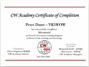 Also this week we’ve received three reports about the CWops Oceania CW Academy conducted by Chris VK3QB that’s just finished.