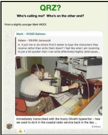 Please let us know via our Reports form bit.ly/CQQRSNET who you work or hear on Tuesday’s Group. The report form closes at lunchtime (Eastern Australian time) on Thursday. ‘And how about helping to make the reports even more interesting by sending a photo?
